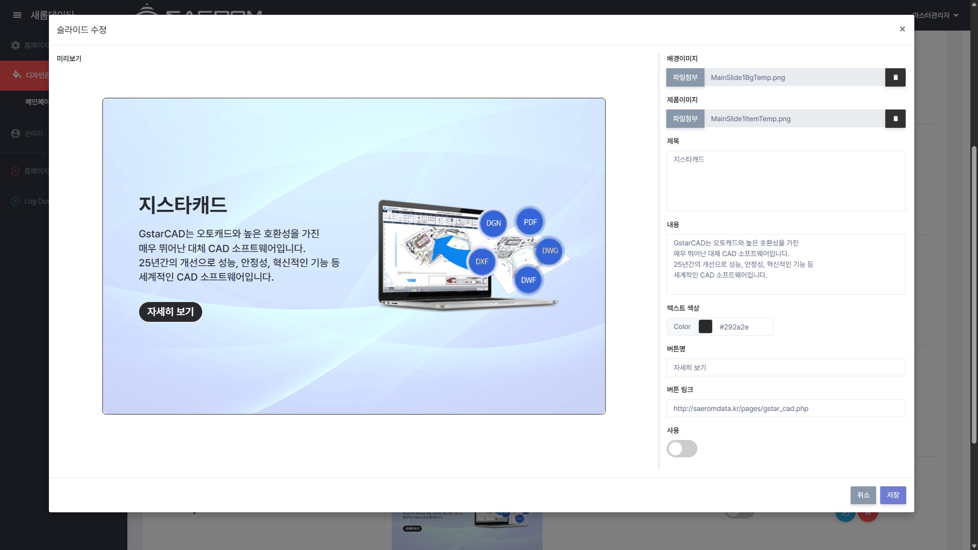 – 메인페이지 전용 디자인 관리자(CMS) 구축